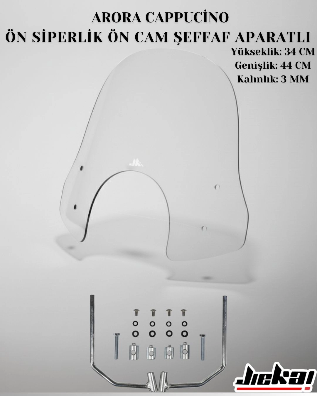 JİEKAİ Arora Cappuccino Şeffaf Ön Siperlik, motosiklet ve scooter kullanıcıları için özel olarak tasarlanmış, şeffaf yapısıyla sürüş sırasında görüş açısını engellemeyen yüksek kaliteli bir ön siperliktir. Aparatlı montaj sistemi sayesinde kolayca takılabilir ve güvenli bir şekilde yerinde durur. Cappuccino rengi, motosikletinize estetik bir görünüm katarken, şeffaf yapısı da görünürlüğü artırır ve sürücünün güvenliğini destekler.