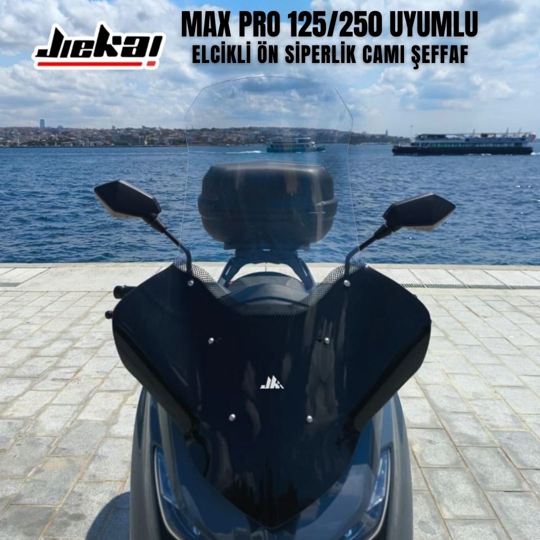 JİEKAİ MaxPro Uyumlu Elcikli Ön Siperlik Camı – Şeffaf