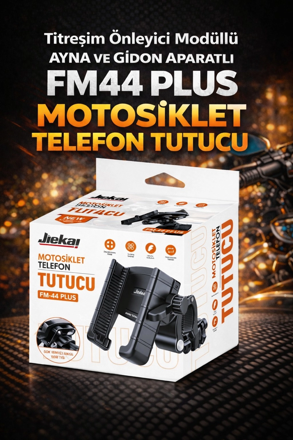 FM-44 PLUS TİTREŞİM MODÜLLÜ MOTOSİKLET TELEFON TUTUCU AYNA VE GİDON APARATLI UNIVERSAL SİYAH