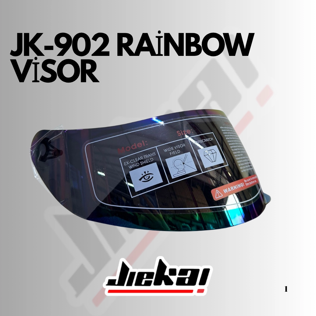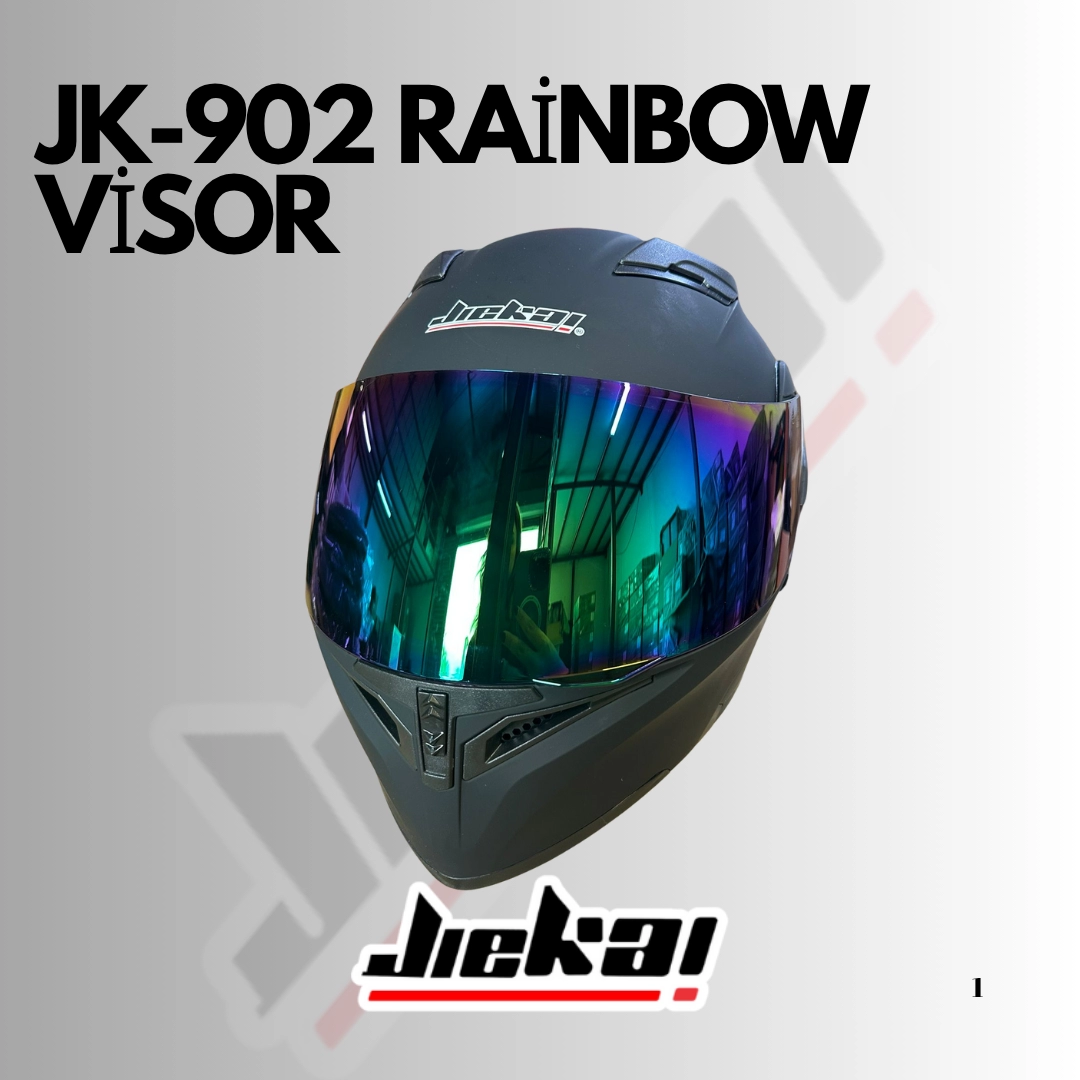 JİEKAİ çene açılır kasklar için özel olarak tasarlanan Rainbow – Hologramlı vizör, ışığa göre renk değiştiren yapısıyla hem şık bir görünüm hem de üstün görüş konforu sunar. Güneşli havalarda parlaklığı azaltır, gece sürüşlerinde net görüş sağlar.