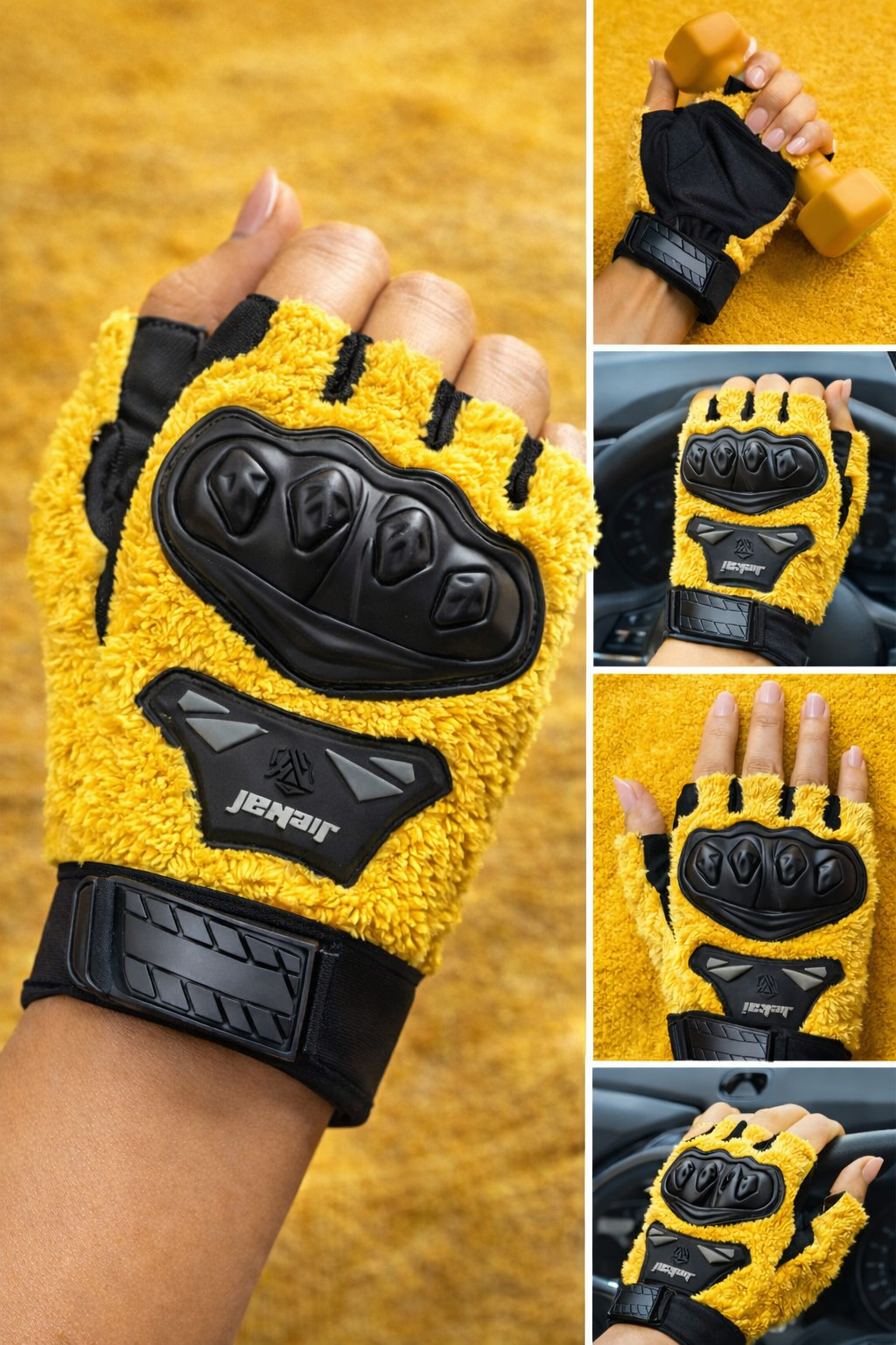JK Peluşlu Yarım Eldiven – Sarı Renk