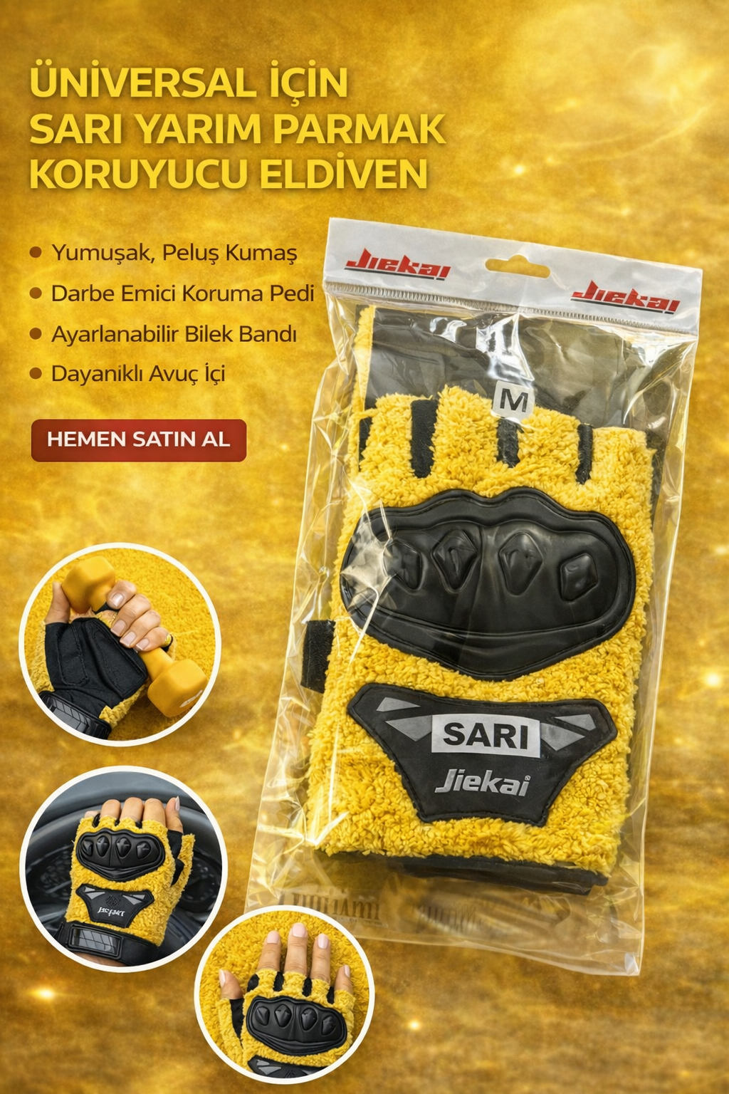 JK PELUŞLU YARIM ELDİVEN KORUMALI SARI RENK