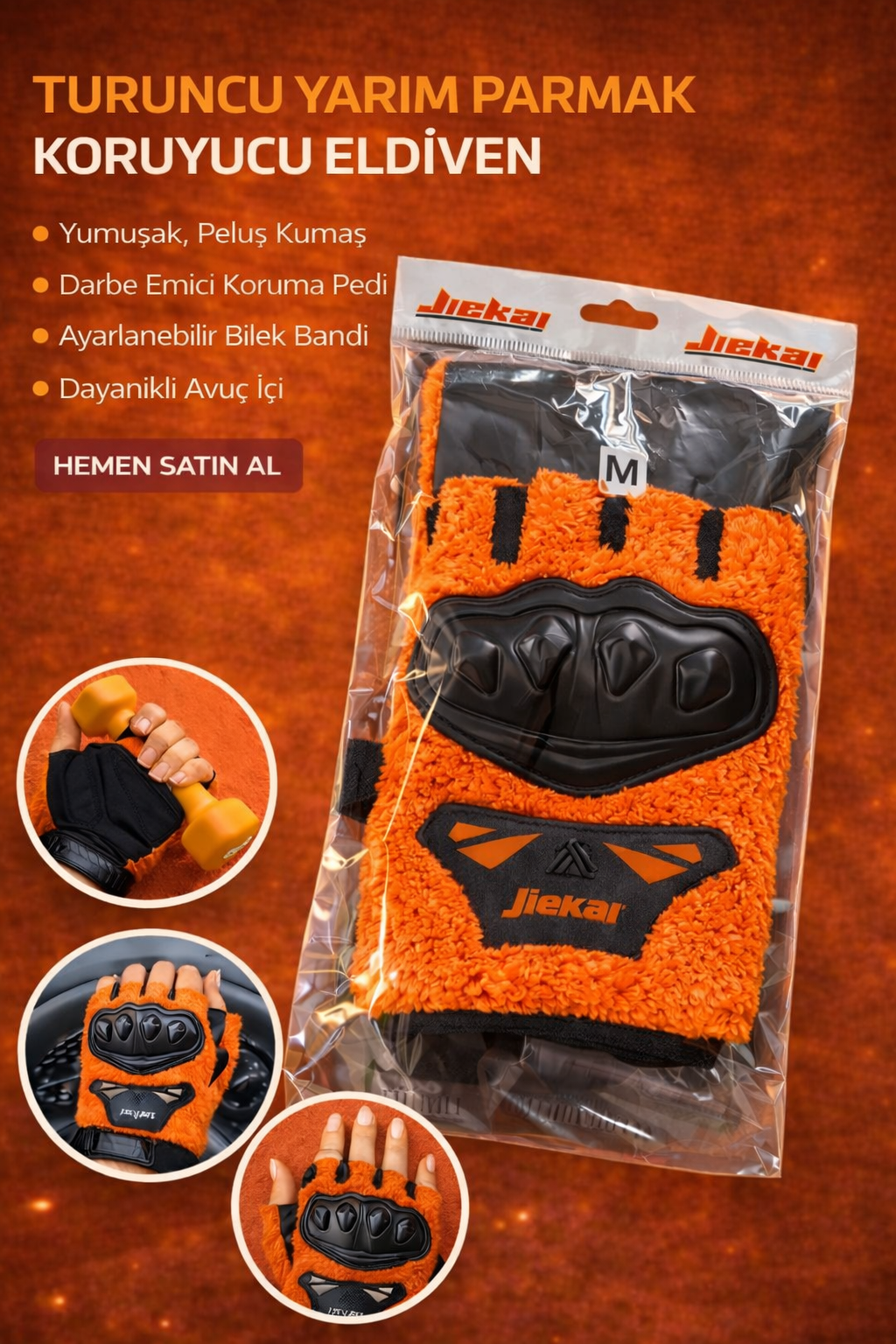 JK PELUŞLU YARIM ELDİVEN KORUMALI TURUNCU RENK